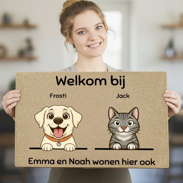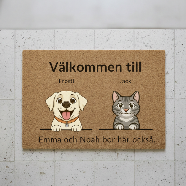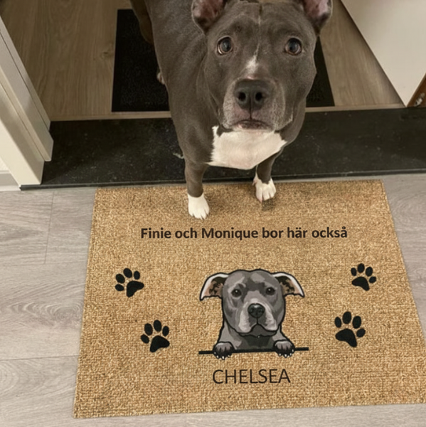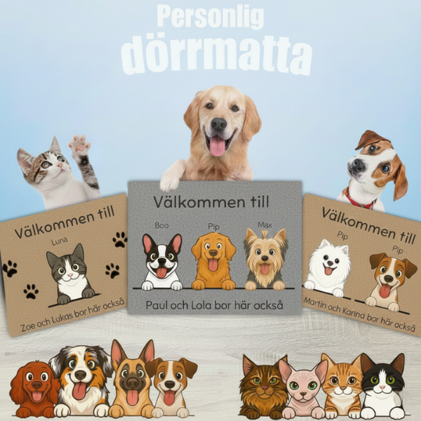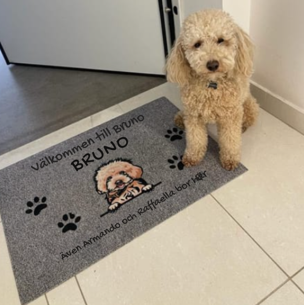 Fira dina lurviga vänner varje gång någon kliver in! Skapa en unik dörrmatta från över 1 000 designer som fångar ditt husdjurs personlighet och hyllar deras ovillkorliga kärlek.